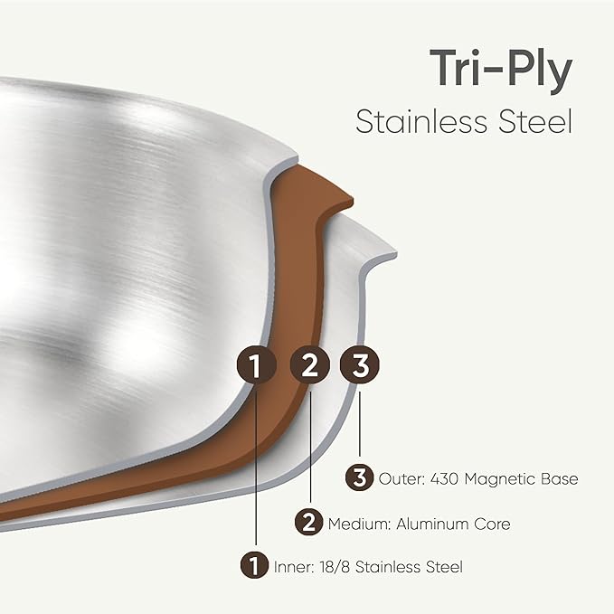 CAROTE 13pcs Tri-Ply Stainless Steel Cookware Set with Detachable Handle, Pots and Pans Set, Induction Kitchen Cooking Sets, RV/Camping Cookware, Oven Safe, Woodgrain Style