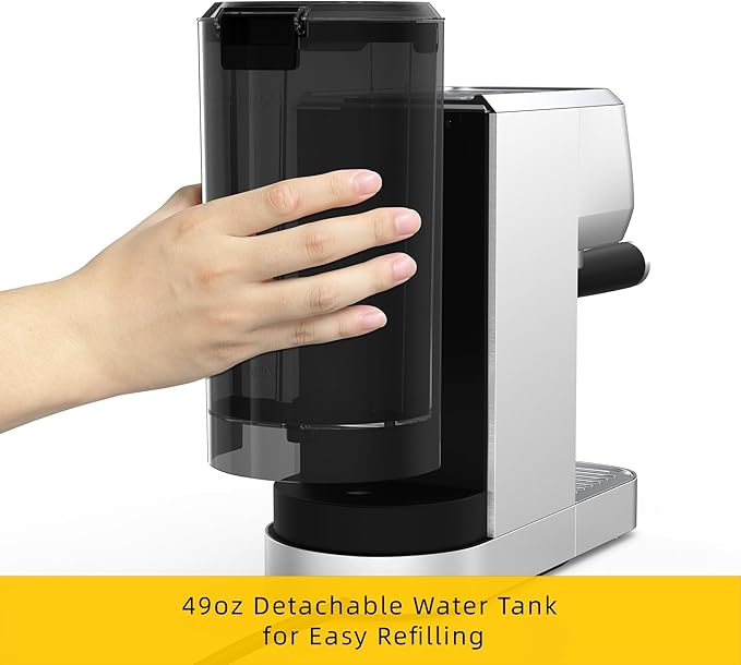 - Modern Industrial Aesthetic: Our espresso maker features a removable 49oz water reservoir, its sleek brushed silver exterior with a light texture, comes with advanced noise reduction technology, and this 0.03m³ compact cafe elevates your kitchen countertop with minimalist sophistication