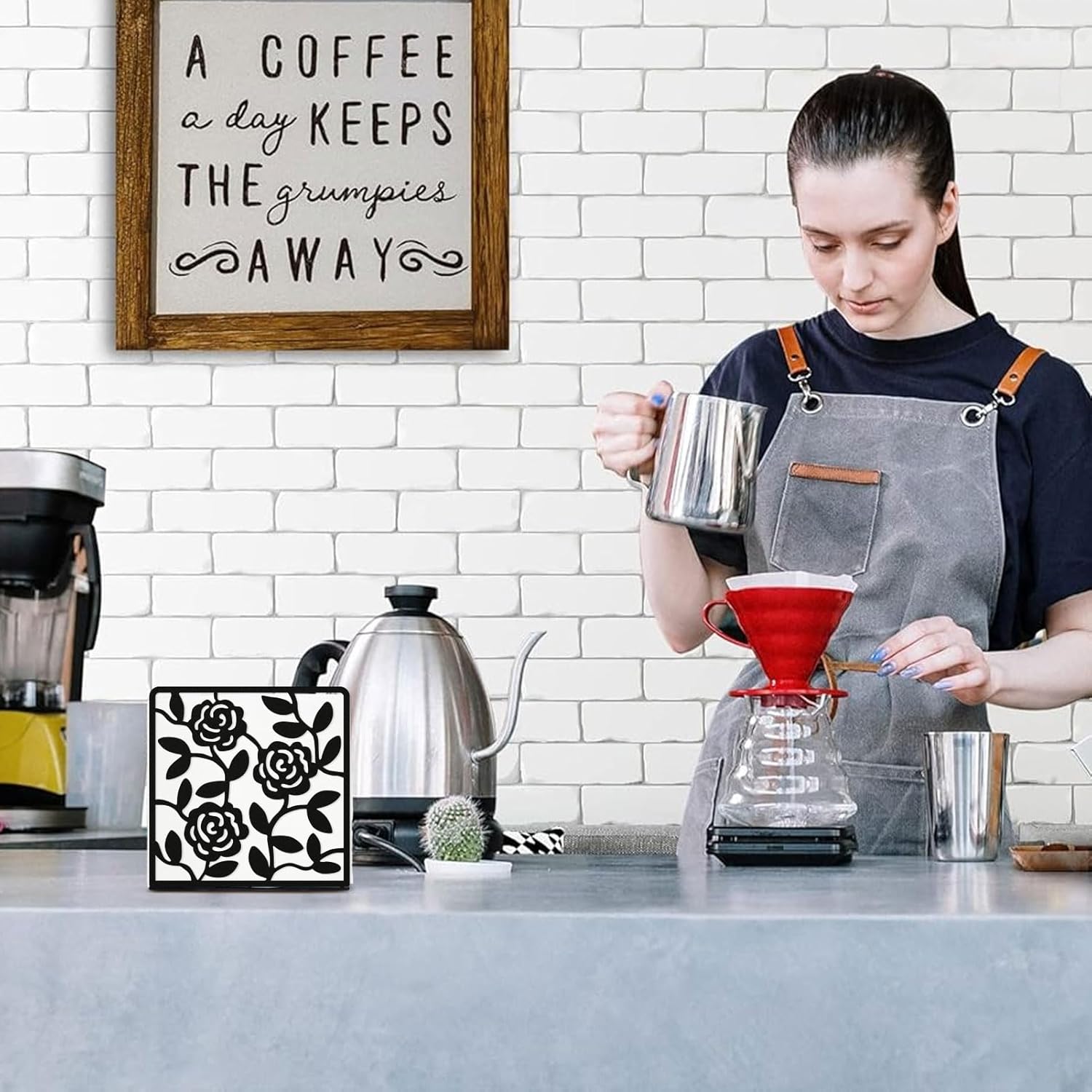 Resama Coffee Filter Paper Holder - Stylish Organizer with Rose Vine Pattern for Kitchen, Cafe, and Office - Decorative Storage Container in Black - Perfect for Home, Dining Room, and Outdoor Use