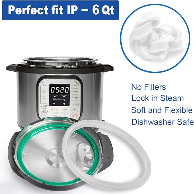 - EASY TO STALL AND REMOVE: instant pot At runtime silicone gasket, Food odors will stick to the silicone gasket, Therefore, our 2 Pack 6QT sealing ring is divided into different colors to distinguish the type of food you are cooking, such as clear is for staple food, green is for vegetables, quick disassembly and installation no food odor mixed anymore