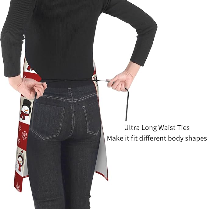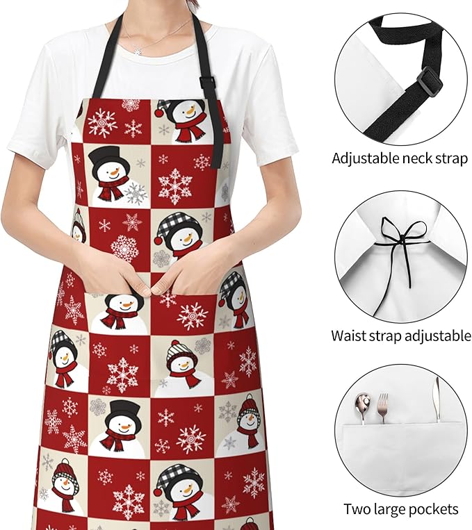 - 【STYLISH】 Vivid and clear artistic printing express fashion statement and enhance the interest of life. The cute snowman apron with pockets is suitable for business, kitchen cooking, birthday parties, painting room, gardens, bars, restaurants, cafes, bars, etc.