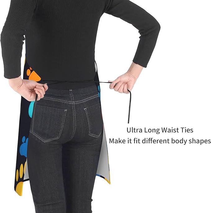- 【STYLISH】 Vivid and clear artistic printing express fashion statement and enhance the interest of life. The animal foot apron with pockets is suitable for business, kitchen cooking, birthday parties, painting room, gardens, bars, restaurants, cafes, bars, etc.