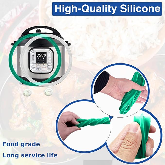 - EASY TO STALL AND REMOVE: instant pot At runtime silicone gasket, Food odors will stick to the silicone gasket, Therefore, our 2 Pack 8QT sealing ring is divided into different colors to distinguish the type of food you are cooking, such as clear is for staple food, green is for vegetables quick disassembly and installation No food odor mixed anymore