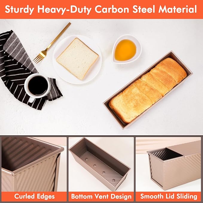 - Multiple Use for 1 Loaf Pan --- Whether you want to make square bread or toast bread, Beasea loaf pan with cover can handle it easily. Flexible use of the lid according to your needs. The kind design can help get two uses of 1 pullman bread pan, which makes beautiful regular loaf bread and slices of sandwich bread.