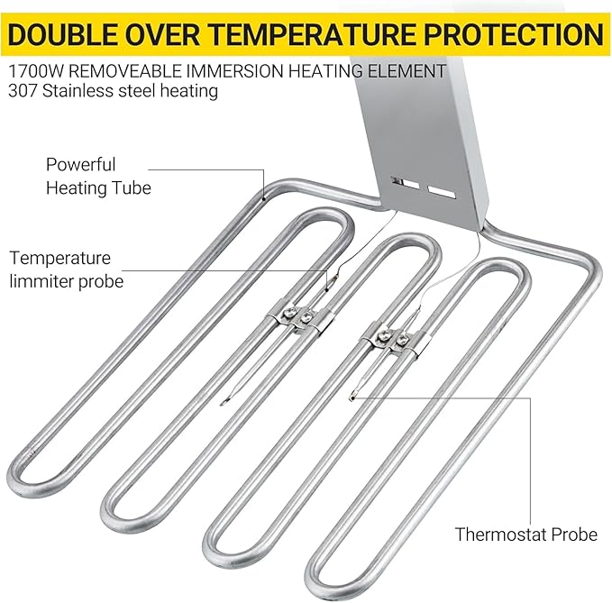 - Adjustable Temperature Control: This Large electric fryer features temperature control function and a heating Status Monitoring, temperature can be adjusted from 140℉ to 392℉ (60℃-200℃), you can set the optimal temperature depending on what you cook. An installed guard plate effectively balances oil temperature and ensures food is fried evenly. This will automatically shut off when the temperature is over 260℃ (500℉) or reach the temperature you set. make restaurant-style appetizers for the whole family in minutes right in your own kitchen