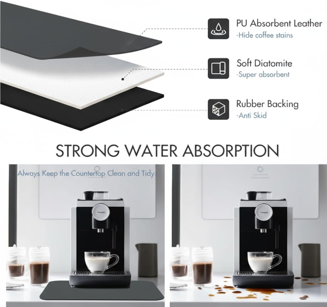 Dish Drying Mat Super Absorbent – 17" x 31" Coffee Mat for Countertops – Non-Slip Drying Mat for Kitchen Counter – Easy to Clean Water Absorbent Mat – XLarge Dish Drying Mats (Dark Gray)