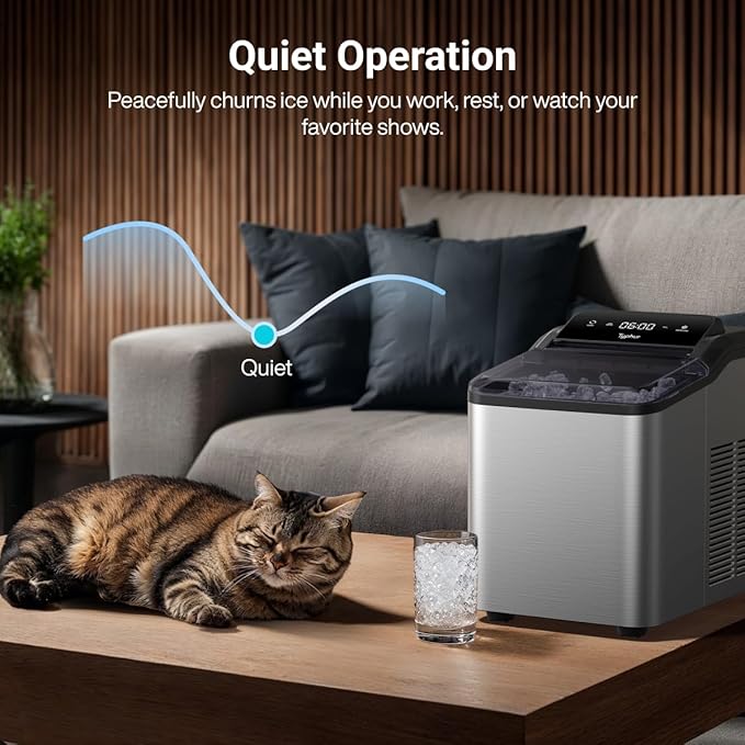 - ONE-TOUCH DEEP CLEANING WITH HIGH-PRESSURE PUMP: Press "Clean" to start a 7-minute automatic cleaning cycle. The high-flow pump thoroughly flushes the ice path, delivering fresher, safer chewable nugget ice. Includes 8 packs of ice maker cleaner & descaler for easy, worry-free maintenance