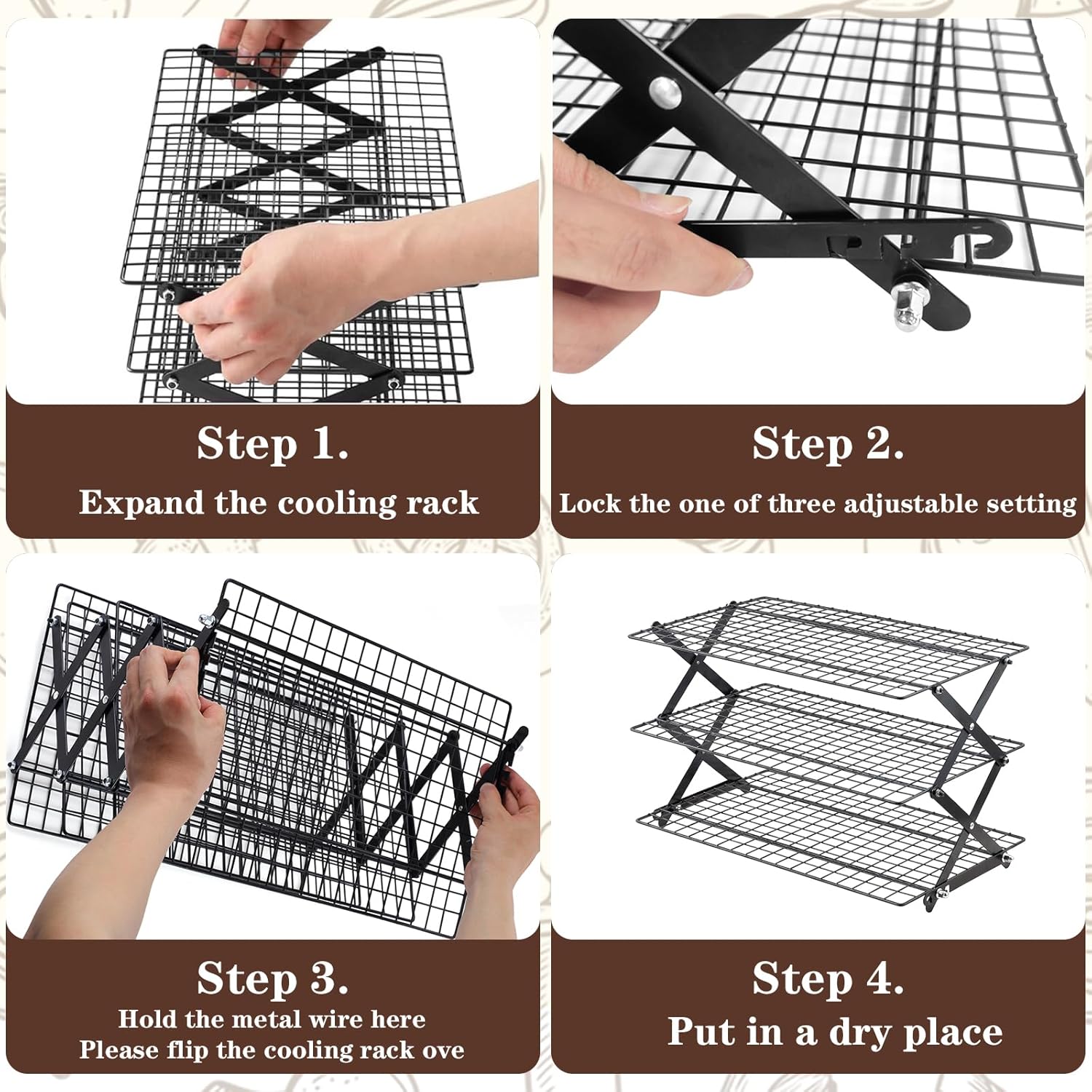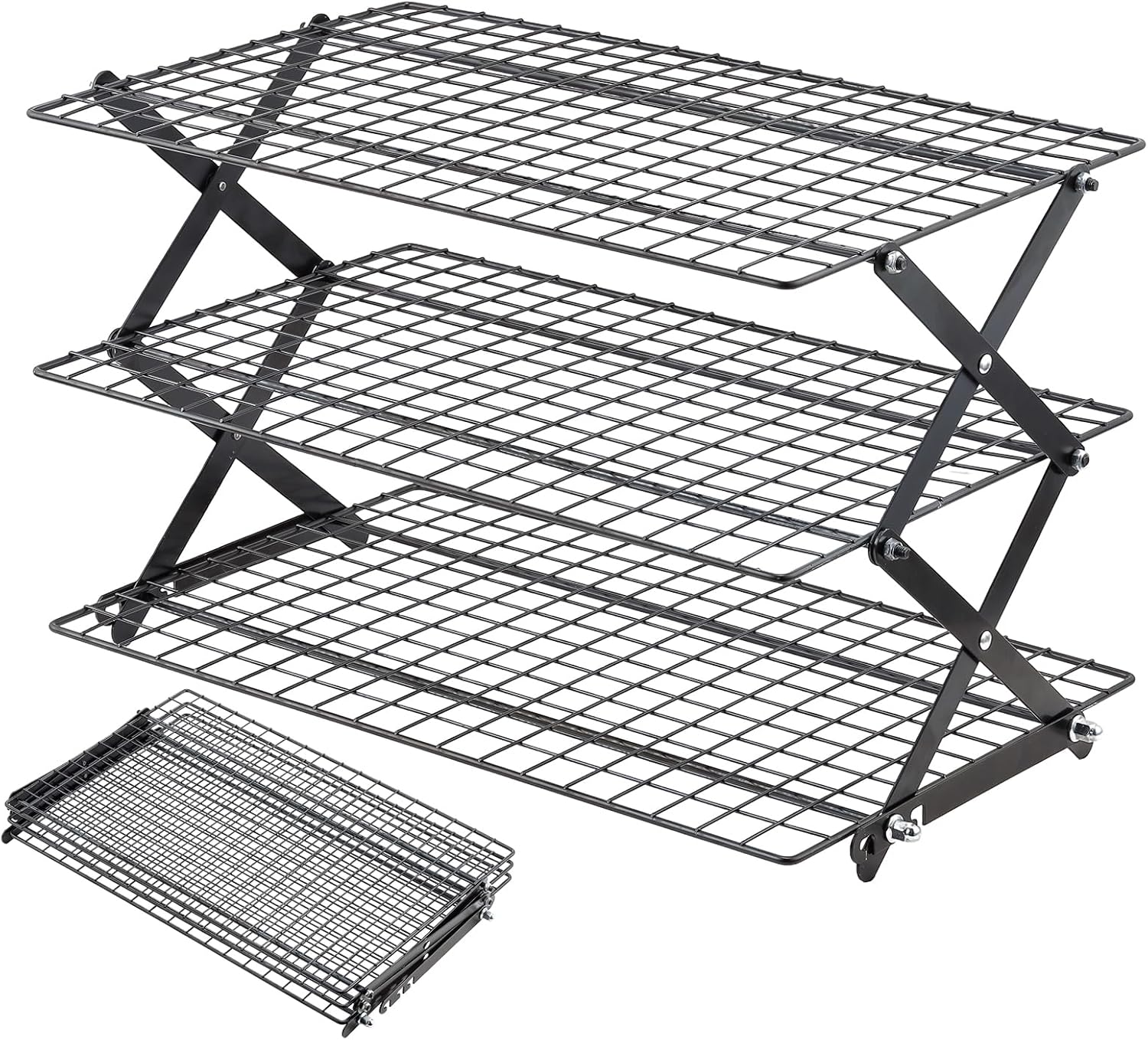 Pleafind 3 Tier Collapsible Cooling Rack - 3 Setting Design, Adjustable & Stackable Baking Rack, 5 Modes Cooling Racks for Cooking and Baking, Roasting & Grilling Gifts for Picnic Party