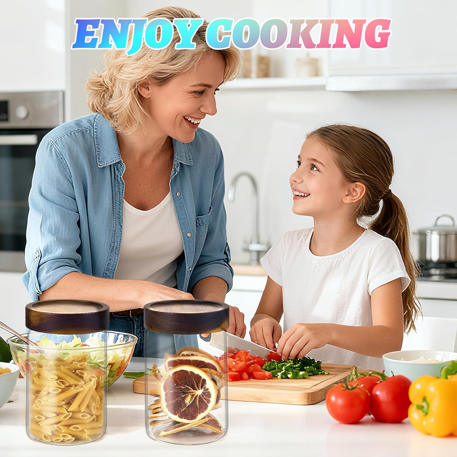 - - 【WIDE APPLICATIONS】 Small glass canisters for pantry organization are suitable for storing various dried ingredients to retain their freshness, with clear glass jars, you can easily see inside and quickly find the ingredients you need.Glass jars with wood lids perfect for storing dry food , such as,cookies,dried beans,pepper, oatmeal,jams, chutneys, rice, flour, tea, coffee, biscuits, candy,cheese,flour, sugar, seeds,etc. Keep your kitchen tidy and safe,saving space and convenient .