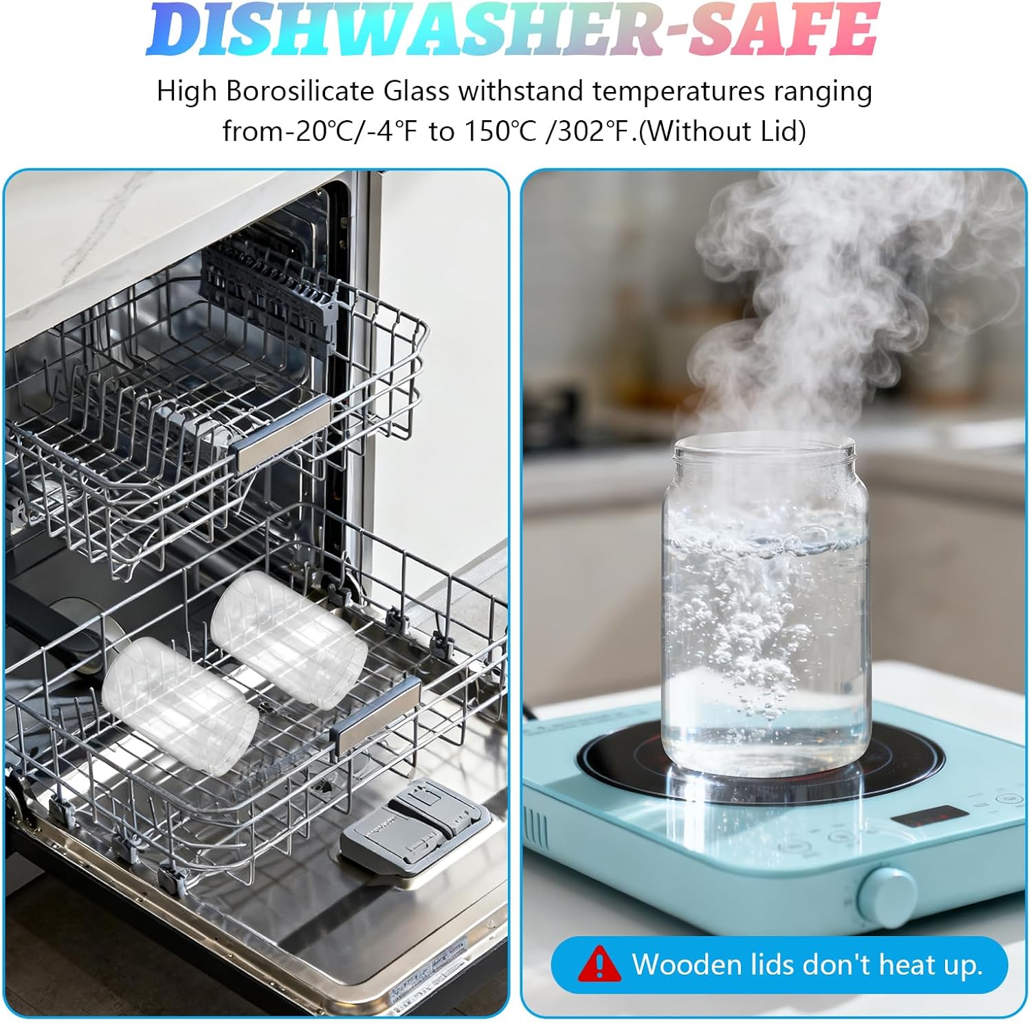 - 【MATERIAL & QUALITY】: glass jar with spoon made of high-borosilicate glass With the advantages of high and low temperature resistance,small glass jars with lids Can burn directly on fire, and the maximum temperature it can withstand is 150℃ /302°F, In a low-temperature environment, the lowest temperature is -20℃/-4°F(Just the glass, not including the lid)Each Clear glass jar has a food-grade silicone seal on the lid.All materials safe and non-toxic.Easy to clean .