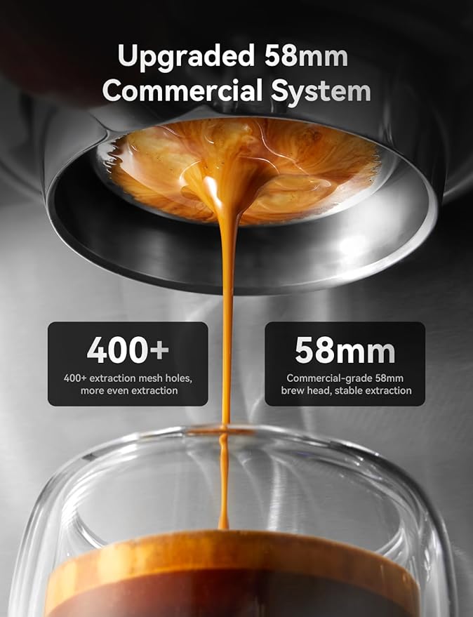 - ✅Visible Pressure Gauge & Temperature - Monitored closely by a visible pressure gauge and temperature display, the espresso machines provide precise readings of pressure, temperature and brewing time, empowering you to adjust according to your taste preferences.