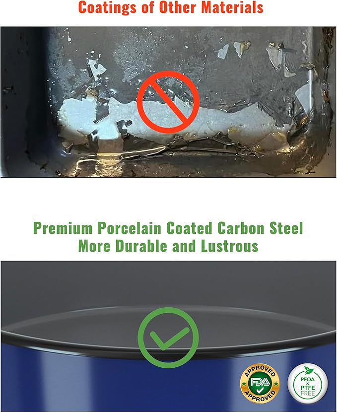 - Stylish Yet Practical: Combining a space-saving nesting design with an elegant enamel finish, this set is as practical as it is stylish. The durable, non-porous surface resists stains and maintains its shine, all while being safe for ovens, grills, stove tops, and campfires—making it a responsible choice for your family and the planet.