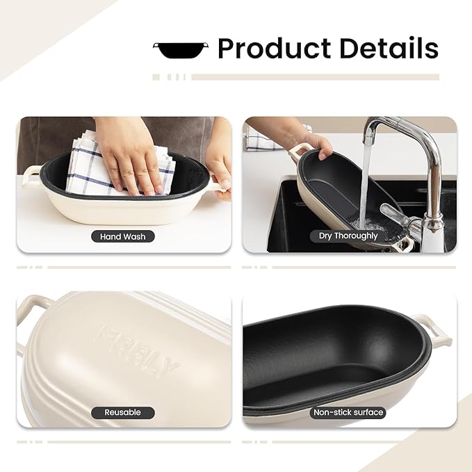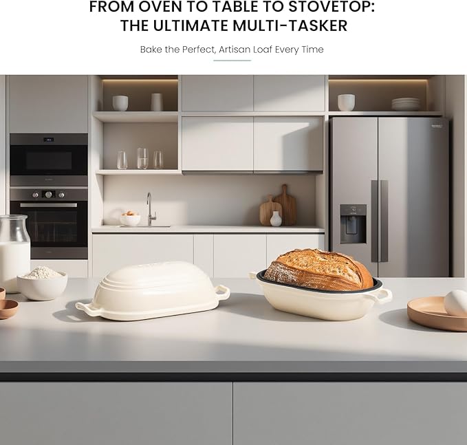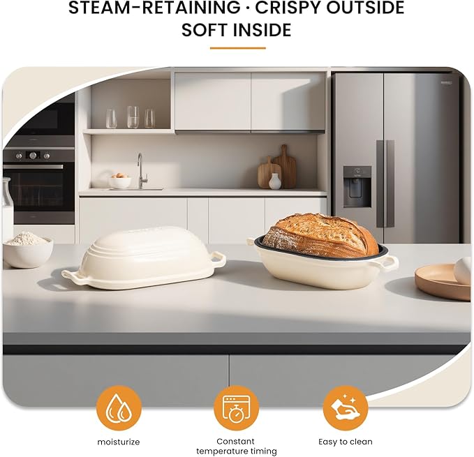 - 【Premium Enameled Cast Iron】 Crafted with high-quality enamel-coated cast iron, this bread baking pan delivers superior heat retention and even baking for perfect golden crusts. The smooth ceramic glaze prevents rust and adds a stylish finish to your kitchen.
