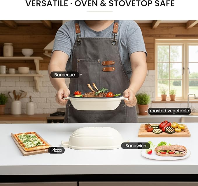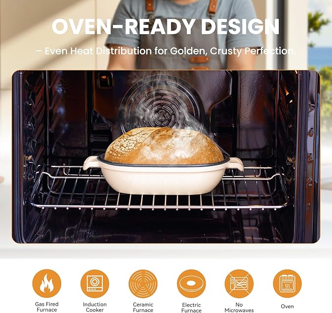 - 【Versatile Baking & Cooking】 Enameled cast iron bread oven Ideal for artisan sourdough, sandwich loaves, baguettes, or even meatloaf and desserts. Oven-safe up to 500°F (260°C) and compatible with gas, electric, and induction stovetops for searing or finishing.