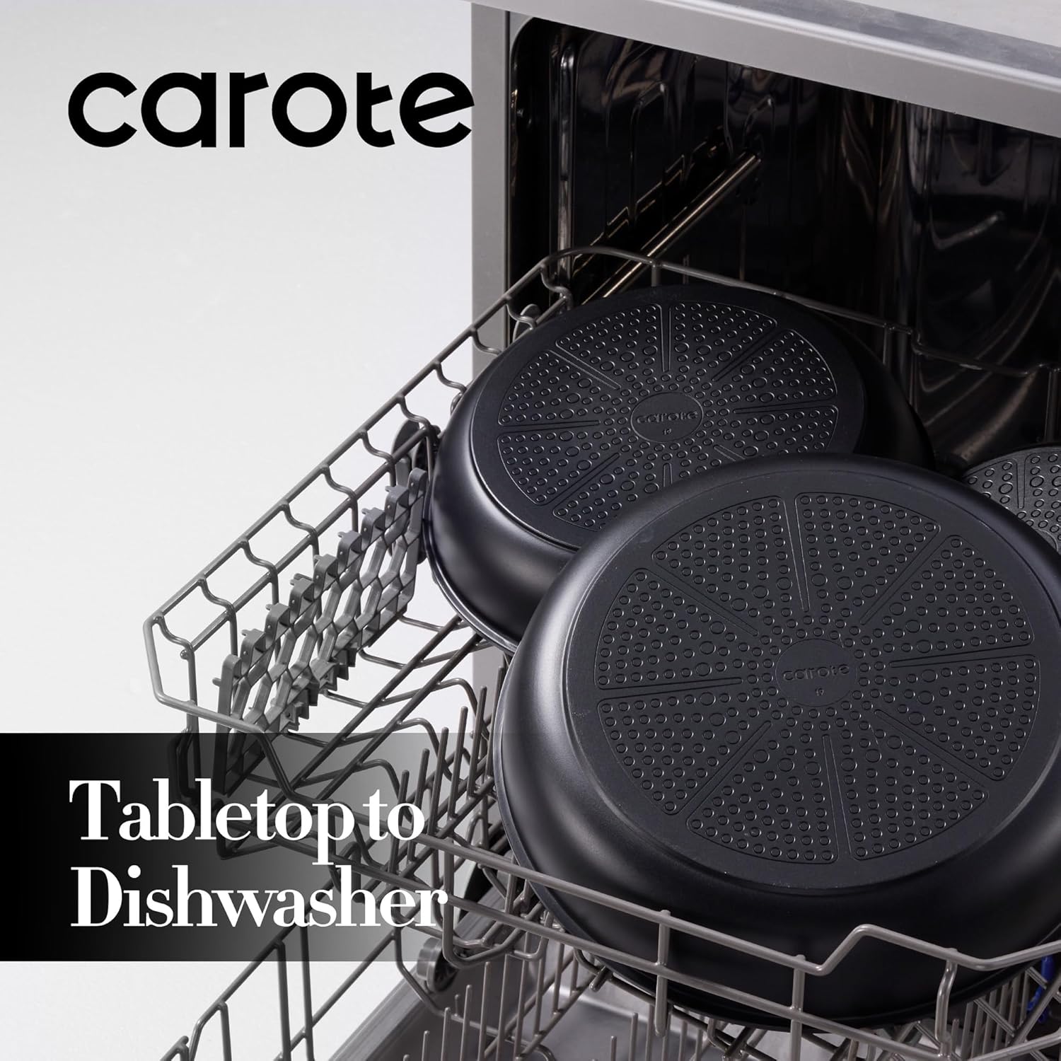 - As both a cookware set and a dinnerware set, 1-time cleaning for all. Dishwasher safe and resistant to the annoying black residue thanks to the spray-coated bottom.