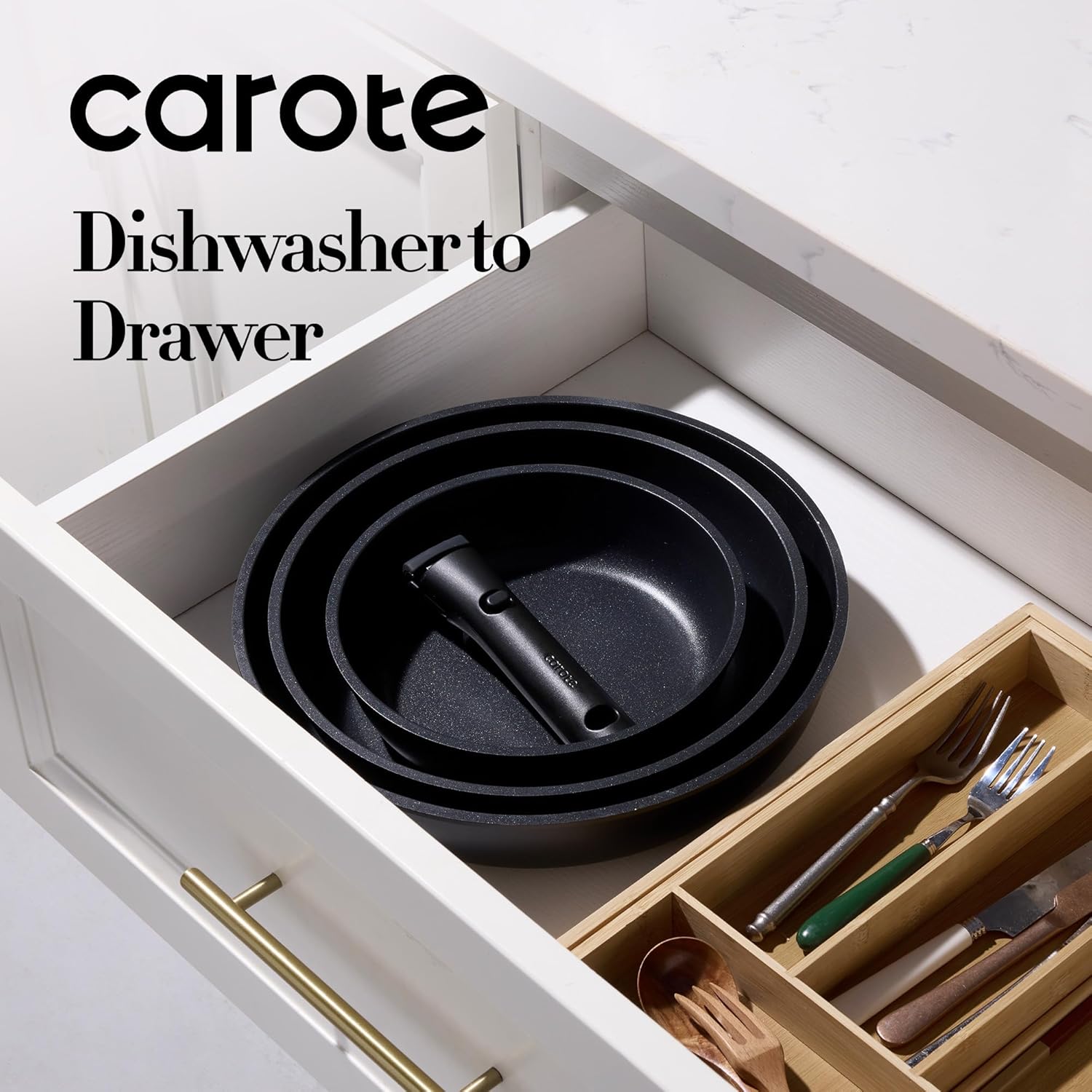 - Optimal storage and easy stacking with the handles off saves up to 70% more space of Carote detachable handle pots and pans set, keeping your kitchen neat and organized.