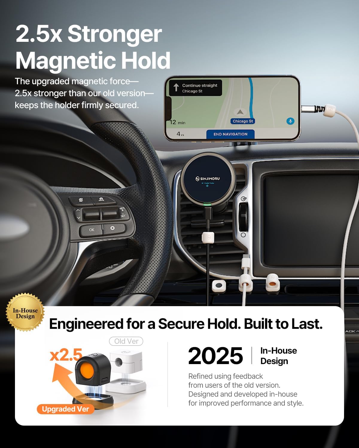 - Enhanced Magnetic Hold (~2.5x vs previous model): Upgraded magnets plus EVA foam assist grip keep heavier cables like HDMI or thick braided leads set in place up to 7.5 mm, reducing slip on desks, nightstands, and car dashboards