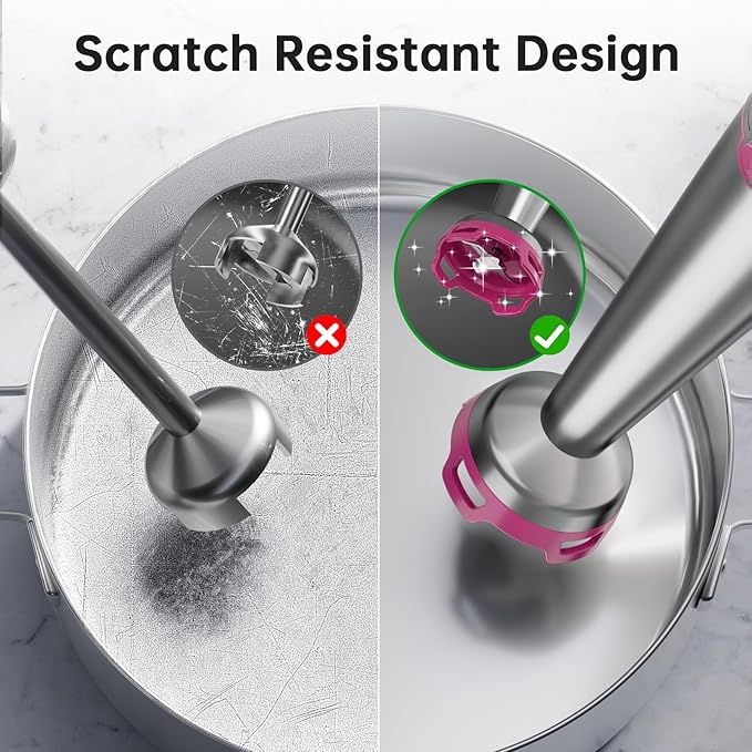 - Effortless Clean-Up, Scratch-Free: Features a unique food-grade nylon blade guard designed to minimize suction, preventing scratches on your pots and pans and keeping splashes at bay for a cleaner kitchen and hassle-free clean-up