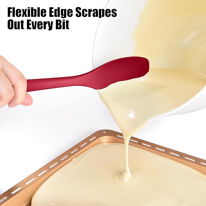 - [Can the cooking spatula be used with non-stick cookware?] Our silicone spoonula is designed to protect non-stick, ceramic, or coated cookware—no scratches, no damage. Its soft, flexible silicone head glides gently over pan surfaces, avoiding the harsh scraping that metal tools cause. And seamless design ensures long-lasting durability, prevents breakage when scraping thick batter, stirring sauces, or scooping dense mixtures. The smooth, gap-free design ensures every surface is easy to clean.