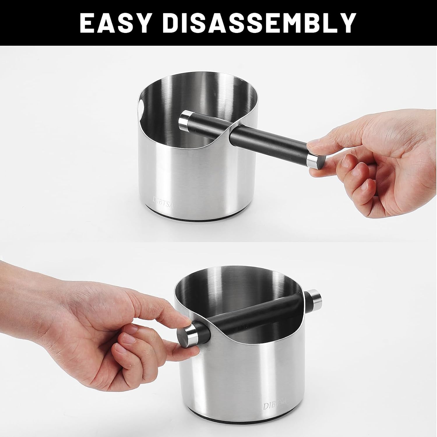- Heavy-Duty Construction: Made entirely of stainless steel, this espresso knock box resists dents and deformation. The rubber-wrapped knock bar protects your portafilter from scratches while preventing messy spills