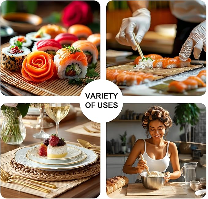 - Packs and Size: Includes 2 PCS Sushi rolling mat, measures 9.5 inches * 9.5 inches.