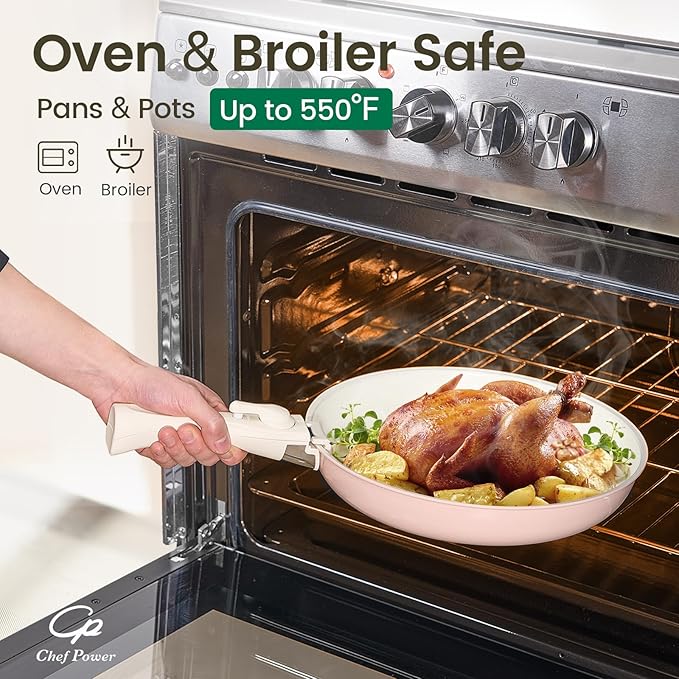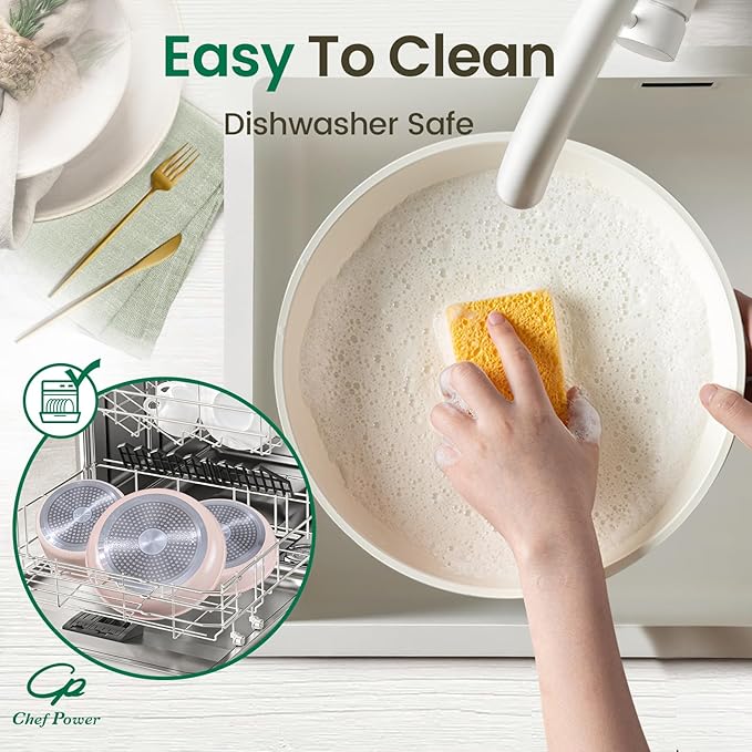- Easy To Clean - Chef Power pans and pots set is designed with ceramic nonstick throughout, support dishwasher and handwash.
