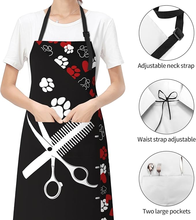 - 【STYLISH】 Vivid and clear artistic printing express fashion statement and enhance the interest of life. The dog groomer apron is suitable for business, kitchen cooking, birthday parties, painting room, gardens, bars, restaurants, cafes, bars, etc.