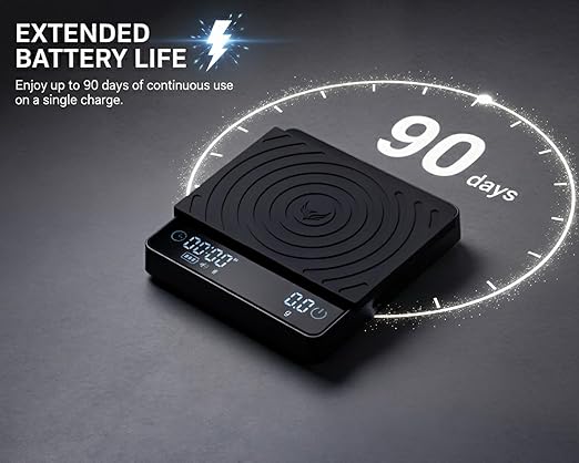 - Rechargeable & Long Battery Life Coffee Scale – Powered by a USB-C rechargeable 3.7V Li-ion battery, this barista scale offers up to 90 days of standby use with auto-sleep, auto tare, and fast one-touch operation. Designed for busy coffee routines, it’s the perfect combination of precision, portability, and long-term durability – making it the best smart coffee scale for espresso and drip coffee in one device