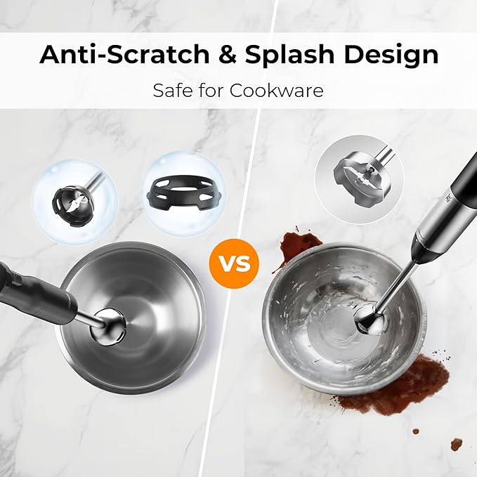 - MORE POWER, LESS EFFORT: Equipped with a 14000RPM high-torque motor, this immersion blender handheld delivers superior blending power with low energy consumption. Mix ingredients faster while keeping noise and vibration to a minimum