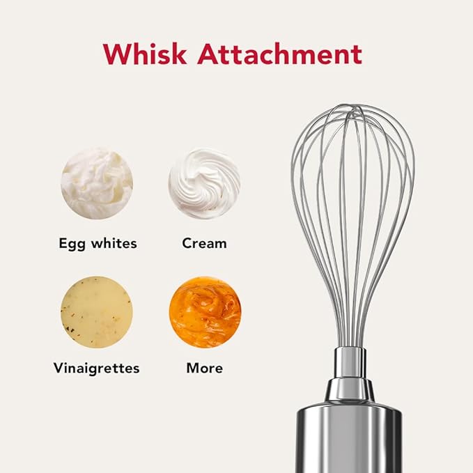 - The whisk attachment can be used to whip egg whites and cream, or make vinaigrettes and mayonnaise