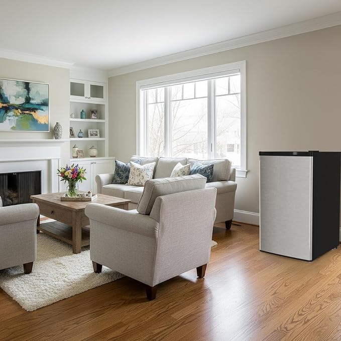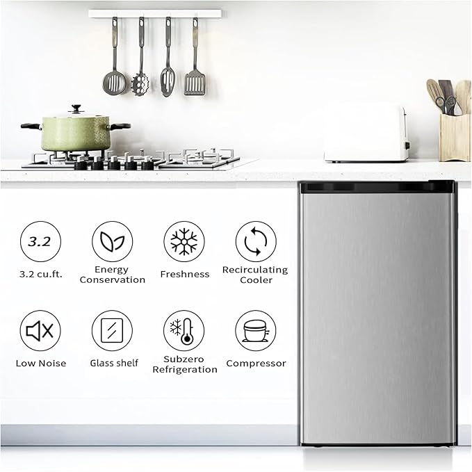 - Size and Capacity-Dimension: 17.52"W x 19.29"D x 30.71"H and 3.2 cu.ft capacity. Sufficient space to store snacks, fruits, vegetables and soda.