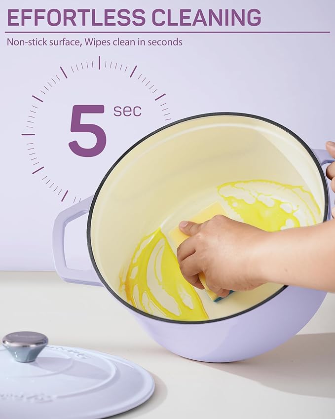 - Non-Stick & Easy to Clean: The smooth enamel interior minimizes food sticking, making cleanup a breeze. Simply wipe it clean, saving you time and effort, so you can spend more moments enjoying your meals with loved ones