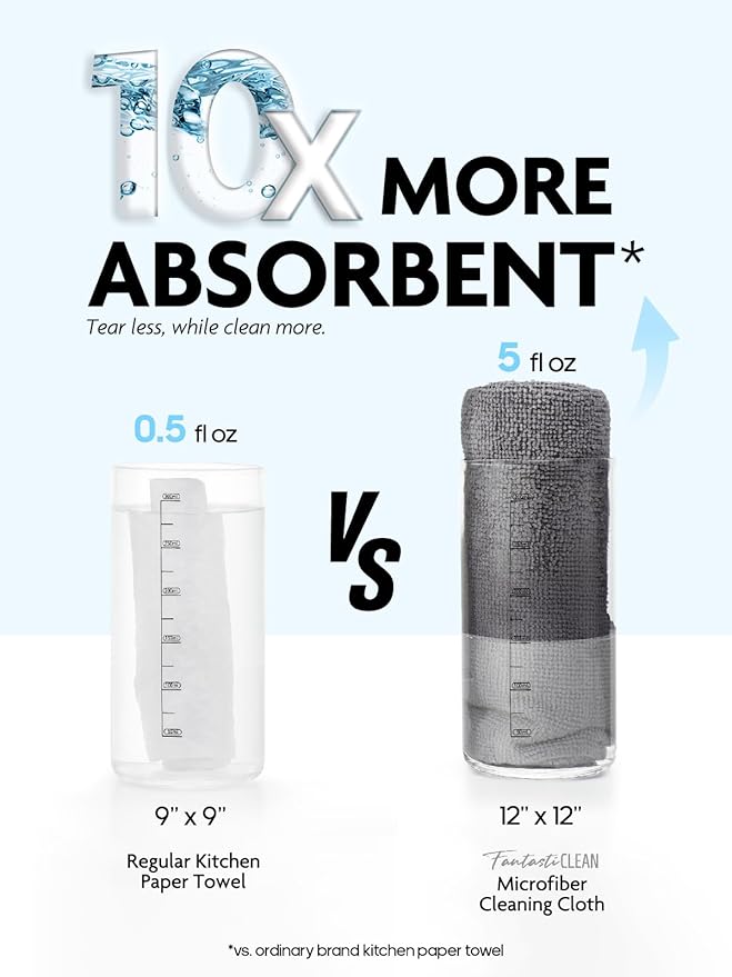 - [Exceptional Absorption] Handle any spill, wet or dry. The cloths can absorb up to 5 times their weight in water, capturing more dirt and drying quicker than conventional towels, while staying odorless