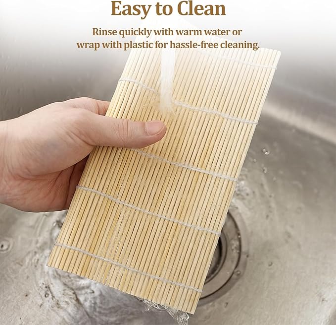 - Easy to Use & Clean: Designed for convenience, this sushi kit is simple to use and clean. Hand wash with warm water for effortless maintenance. Wrap bamboo mats with plastic wrap for added ease during cleaning
