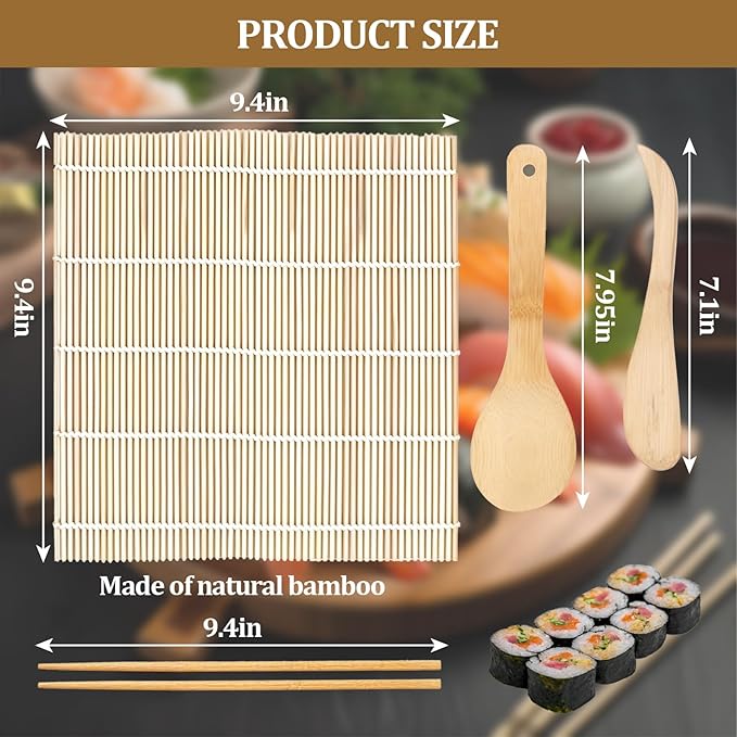 - Premium Natural Bamboo Material : Crafted from high-quality natural bamboo, each piece in this sushi making kit is durable, chemical-free, and safe for your family. Enjoy eco-friendly cooking with no harmful substances or varnishes