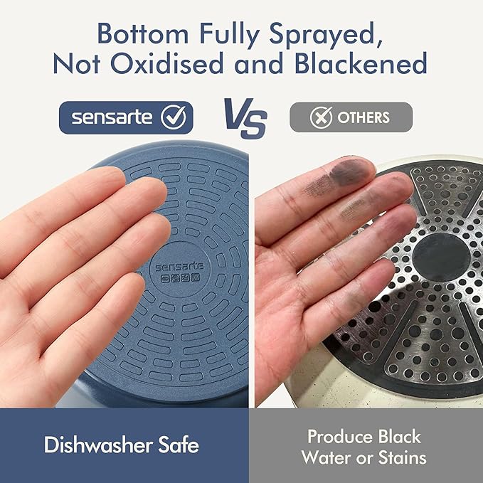 - Dishwasher Safe - This upgraded set features a fully coated bottom that resists discoloration and prevents black residue. Keep your hands, towels, and countertops spotless, while enjoying effortless cleanup—even after repeated dishwashing.
