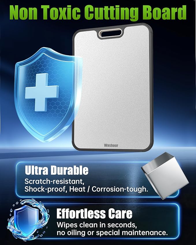 - 2-in-1 Non Toxic Cutting Board: Features food grade 304 stainless steel and wheat straw PP, perfect for separating meat and vegetable prep