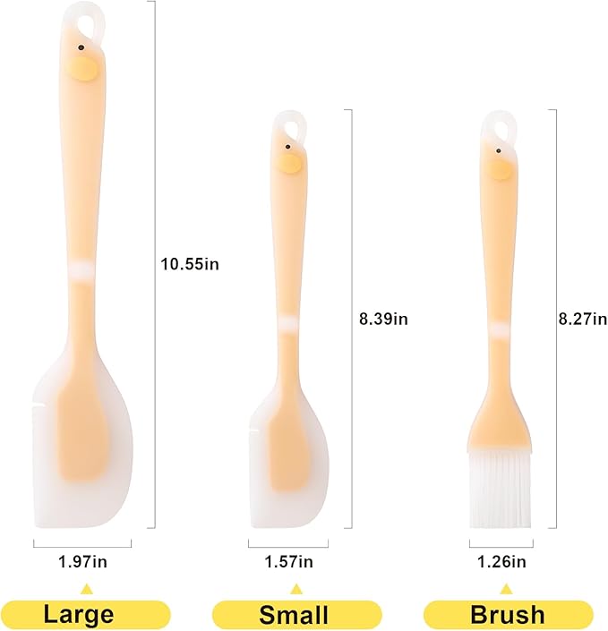 - 【3-Piece Silicone Spatula & Brush Set】This silicone utensils set for cooking includes 1 large silicone spatula (10.5“ × 1.97”), 1 small silicone scraper (8.39“ × 1.57”), and 1 silicone basting brush (8.27“ × 1.26”)—perfect for daily cooking and specialty baking.