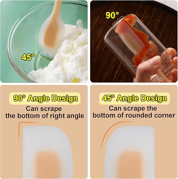 - 【Thoughtful Design】Our silicone spatula’s grooved detail makes scraping every last bit of egg whites and cream from beaters a breeze—no waste! Its handle’s built-in stand keeps the blade off dirty countertops for hygiene, while the hanging loop enables easy air-drying or wall storage.
