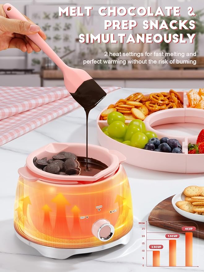 - Perfect Melting Temperature & Time-Saving Design : Achieve the perfect chocolate melt in just 20 minutes! The separate design of LUSHYUM melting pot and tray allows you to melt chocolate while prepping other ingredients simultaneously. With 2 precise temperature settings, you can safely melt your precious chocolate. Save time during party prep, so you can enjoy more of your celebration without waiting!