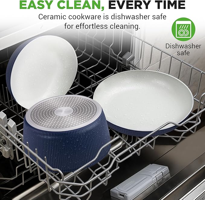 - EASY CLEAN AND SPACE SAVING - With non-stick ceramic surfaces and detachable handles, cleaning is a breeze, and cookware stacks compactly to save kitchen space. No missing parts or flimsy build—just durable, reliable pots and pans designed to last.