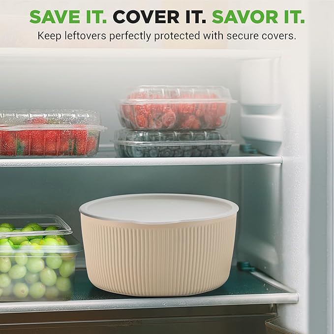 - COMPLETE COOKWARE KIT - This set includes multi-sized pots and pans with silicone-rimmed tempered glass lids, heat-resistant utensils like spatula, ladle, and tongs. Also features fridge storage covers for convenient leftover storage and meal prep.