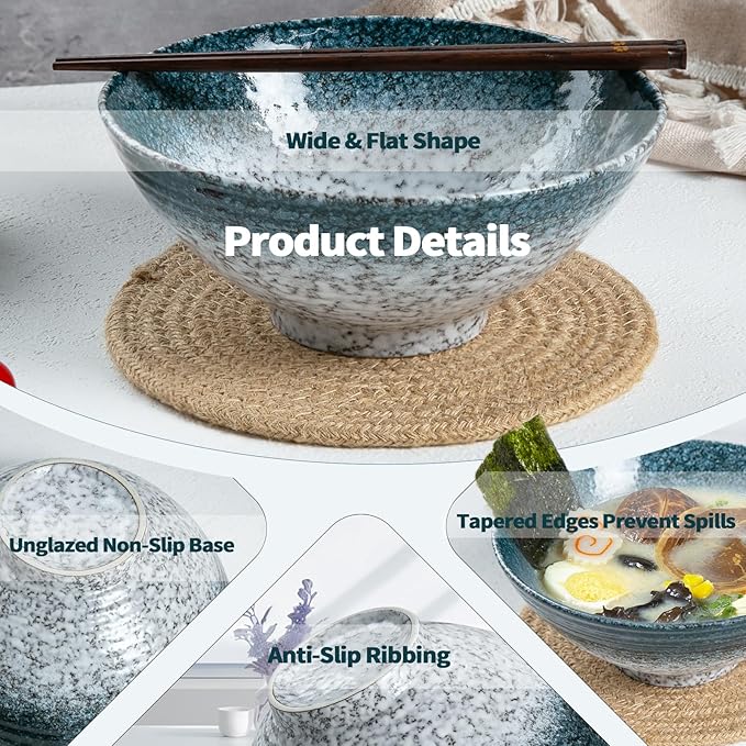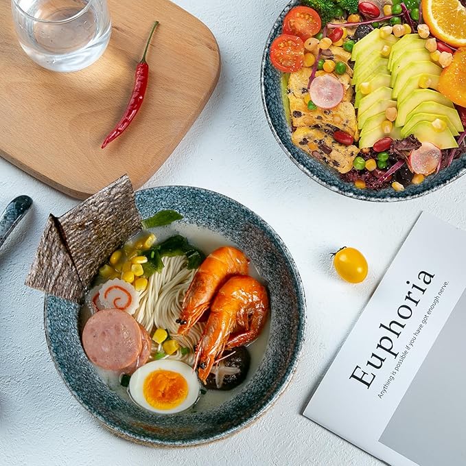 - 【Authentic Japanese Style】- This ceramic ramen bowl set brings an authentic Japanese sensory journey to your taste buds and vision,Enhance your dining experience while enjoying delicious ramen