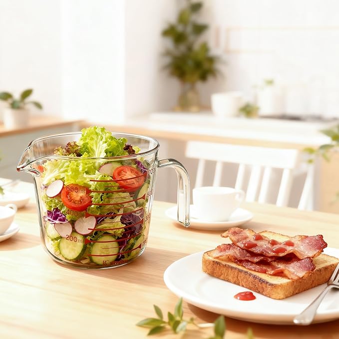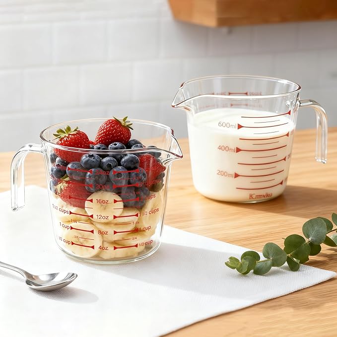 - 【Comfortable and Lightweight Design】: The high borosilicate glass measuring cup is lightweight and easy to handle, reducing strain on your wrists. This makes it perfect for various kitchen tasks, whether you're cooking, brewing coffee, or baking