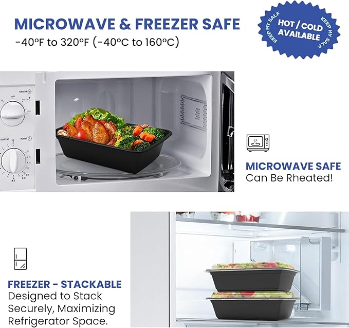 - π₯βοΈ MICROWAVE & FREEZER SAFE: These BPA-free disposable food containers can withstand a temperature from -40βto 248β, totally Microware Safe & Freezer Safe. Easily reheat your leftovers in the microwave just 2-3 mins to have delicious meals without switching dishes, or freeze meals for future use