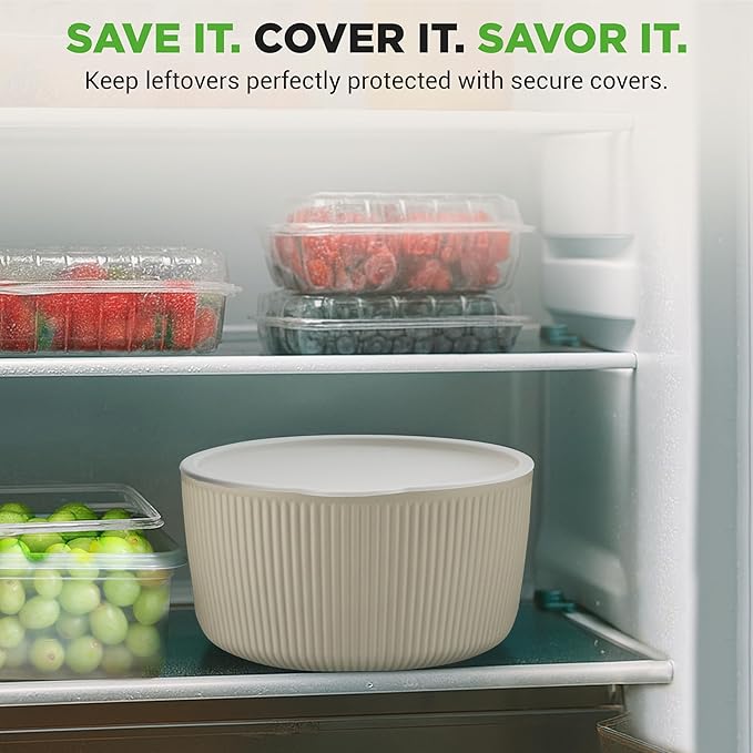 - COMPLETE COOKWARE KIT - This set includes multi-sized pots and pans with silicone-rimmed tempered glass lids, heat-resistant utensils like spatula, ladle, and tongs. Also features fridge storage covers for convenient leftover storage and meal prep.