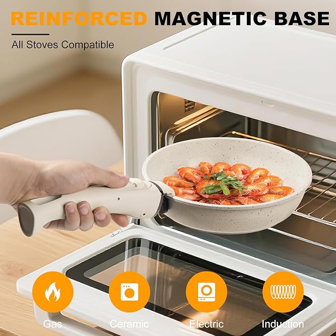- 【Universal Detachable Handle】The Quick-Release handle enables seamless transitions between cooking surfaces - effortlessly shift from induction stovetops to ovens (up to 600°F), grills, refrigerators, or direct table serving. This multi-surface compatibility unlocks unprecedented culinary flexibility.