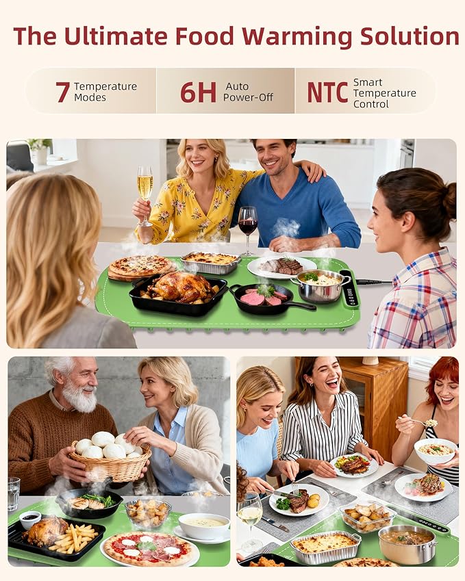 - 【Quality Assurance & 24/7 Service】Each food warming pad undergoes strict factory testing to meet safety standards, so you can rely on its quality. We offer a 1-year warranty, giving you confidence in every purchase. Should you encounter any quality issues during use, simply contact us and we will promptly provide a replacement. Our 24/7 customer support ensures you always have assistance when you need it.