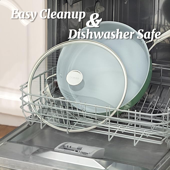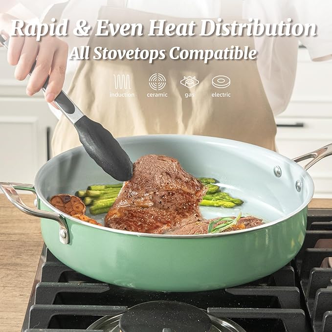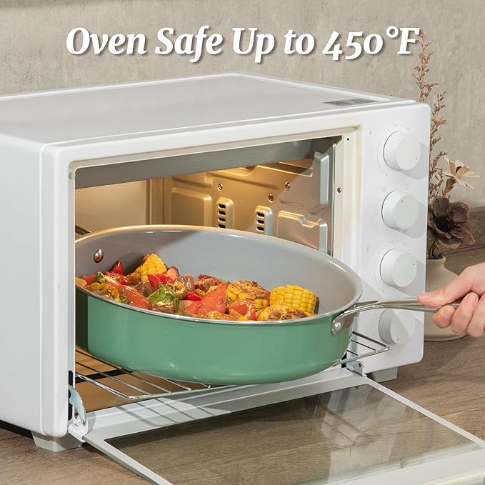 - Effortless Cleanup & Dishwasher Safe- With the complete ultra nonstick ceramic coating, cleaning up our large skillet is like a breeze by simply wiping the saute pan with a sponge and warm soapy water, or toss it in the dishwasher for even more effortless cleanup