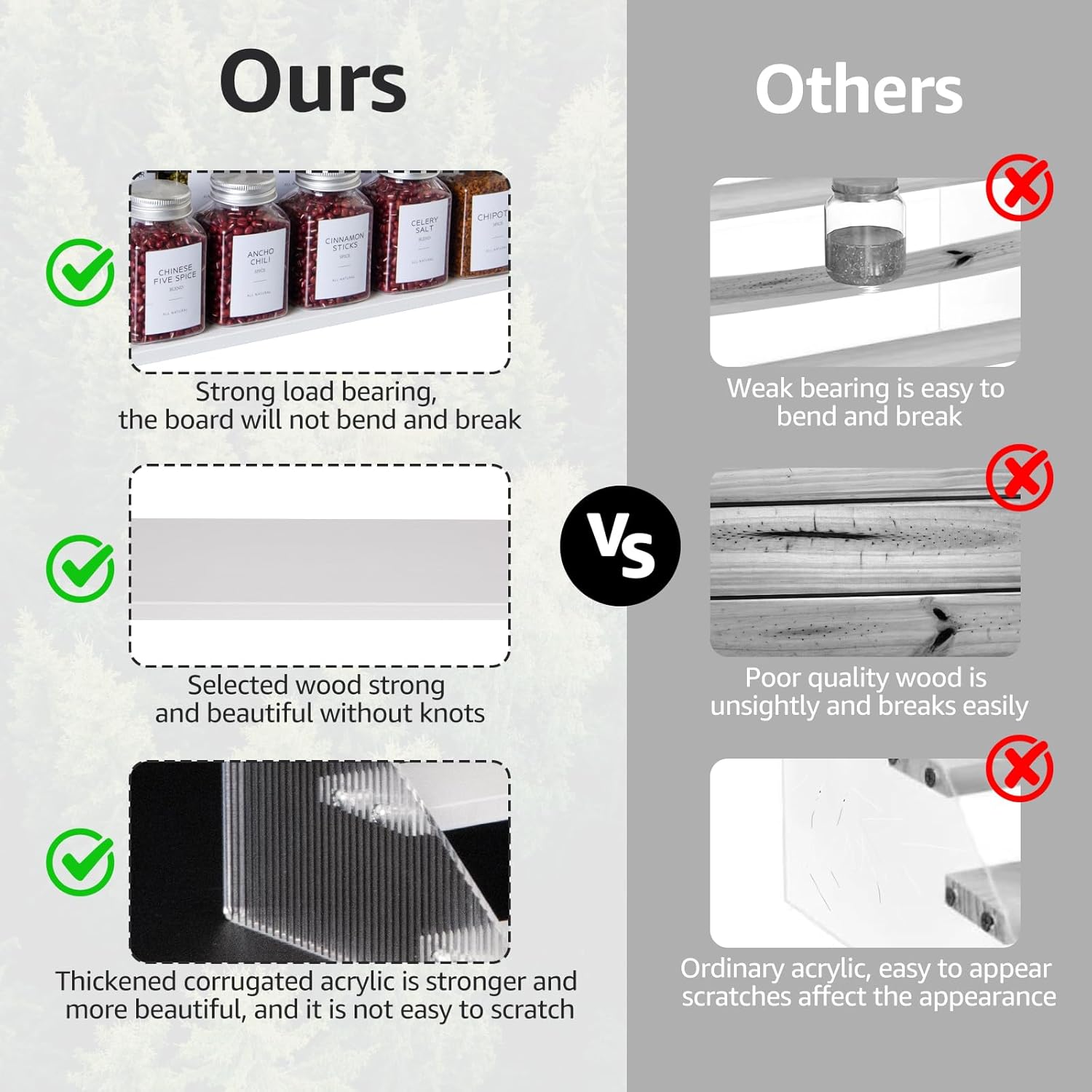 - Elegant & Sturdy: Risers display stands constructed from high-quality pine wood and corrugated acrylic, making it both aesthetically pleasing and fashionable, as well as durable and resistant to deformation, the spice shelf is a beautiful and robust addition to any space